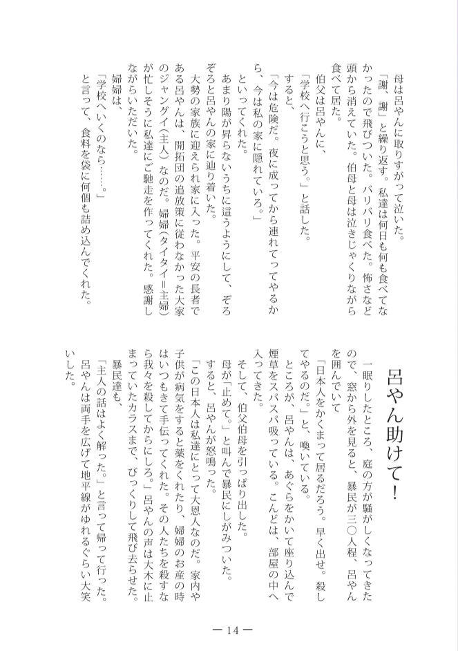 その辛く険しい逃避行を振り返り、書き上げた手記です。